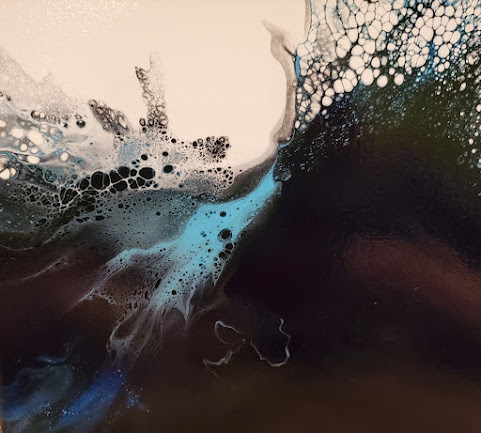 The colors are Black, White, Light Blue and Prussian Blue. This is another Dutch Pour painting on 12X16 stretched canvas. This was done with acrylic paints. All my paints are mixed with pouring medium before using. All paintings are varnished with 3-4 coats of varnish for protection and to bring out all the colors.